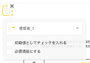 → To have the recipient select checkboxes, select “Recipient_◯” to assign the appropriate recipient. In the same window, select whether checkboxes are selected by default, and whether checkboxes are optional or required.