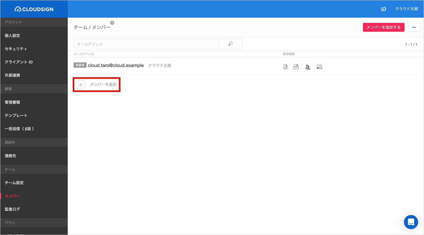 メンバー、管理者の追加/削除は、「チーム管理者」が行えます。