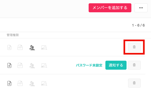 3.削除したいメンバーの右側にゴミ箱のマークがあるので、こちらをクリックします。