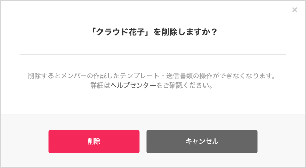 4. 削除の最終確認を行うポップアップが立ち上がるので、「削除」を選択すると削除が完了します。