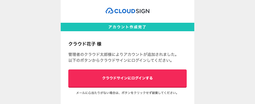 SSO(シングルサインオン)機能でログインの場合、入力されたメールアドレス宛にアカウント作成完了メールが届きます。