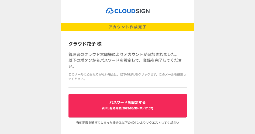 なお、パスワード設定依頼メールの有効期限は10日間となっております。