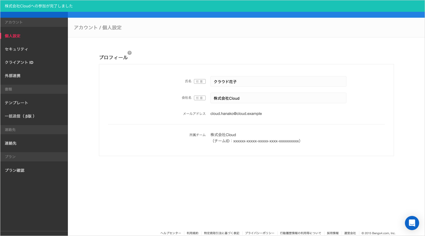 チームへの参加が完了した場合はチーム管理者全員に「チーム参加完了」の通知が届きます。