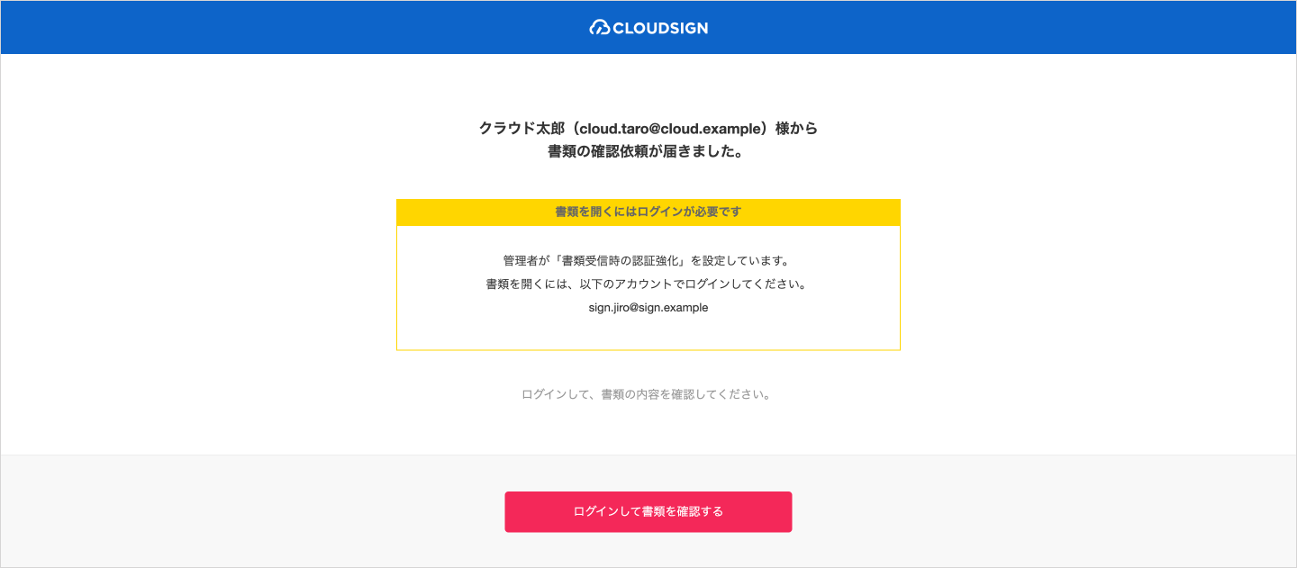 チームまたは組織内のメンバーが受信した書類を確認・同意する際に、ログインを必須とする設定ができる機能です。